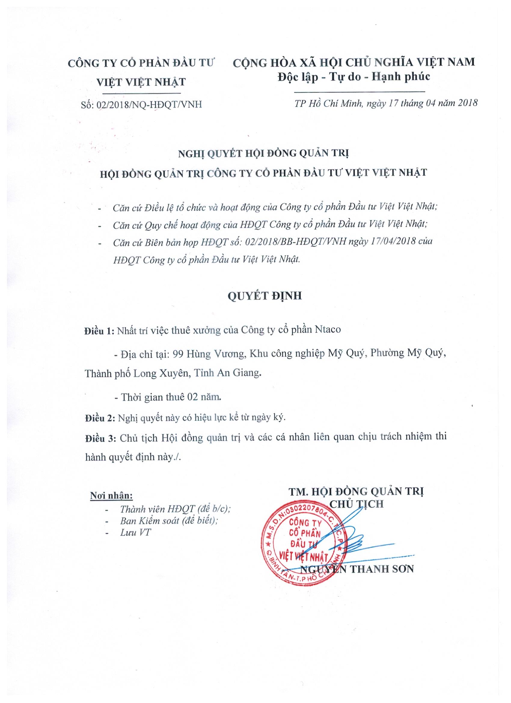 CHÀO MỪNG ĐẾN VỚI CÔNG TY CỔ PHẦN ĐẦU TƯ VIỆT VIỆT NHẬT - HỢP TÁC ĐẦU TƯ XUẤT NHẬP KHÂU CÁC LOẠI HÀNG HOÁ TRONG VÀ NGOÀI NƯỚC - 0909415538